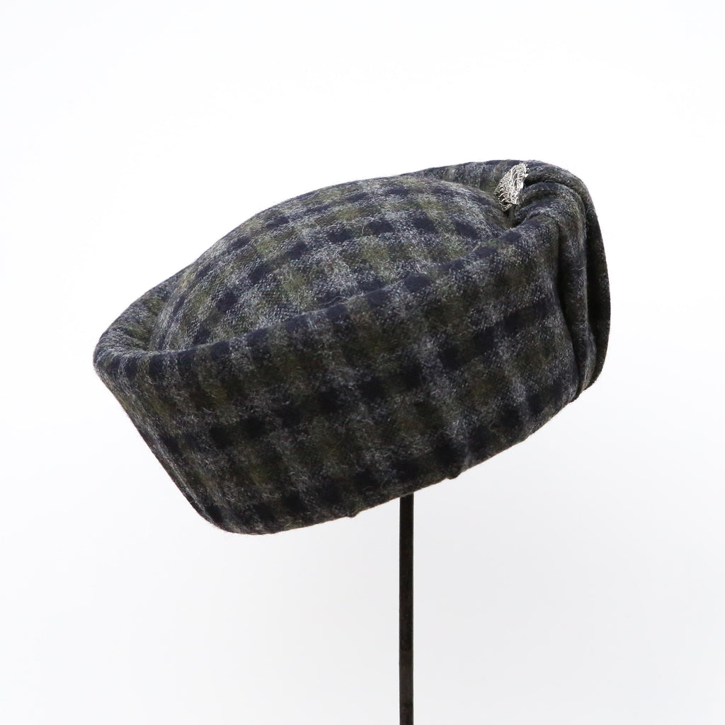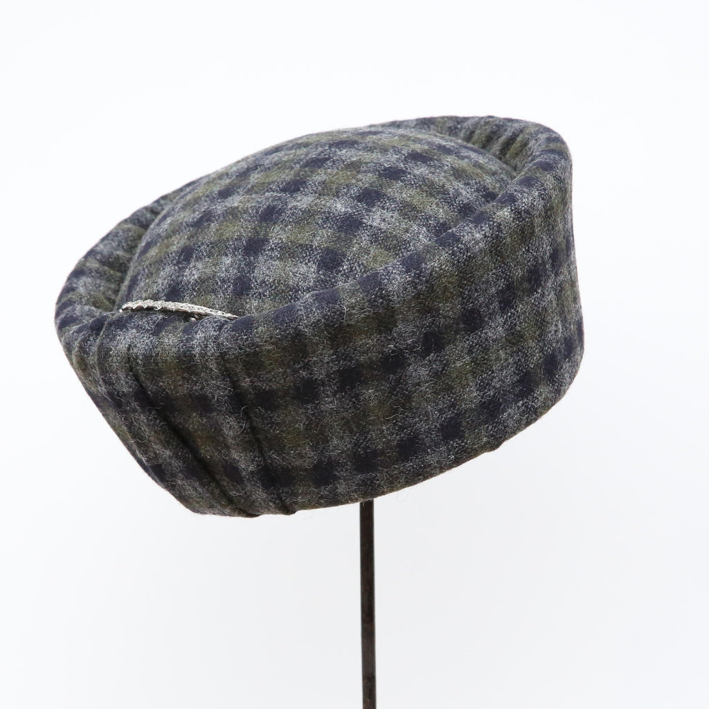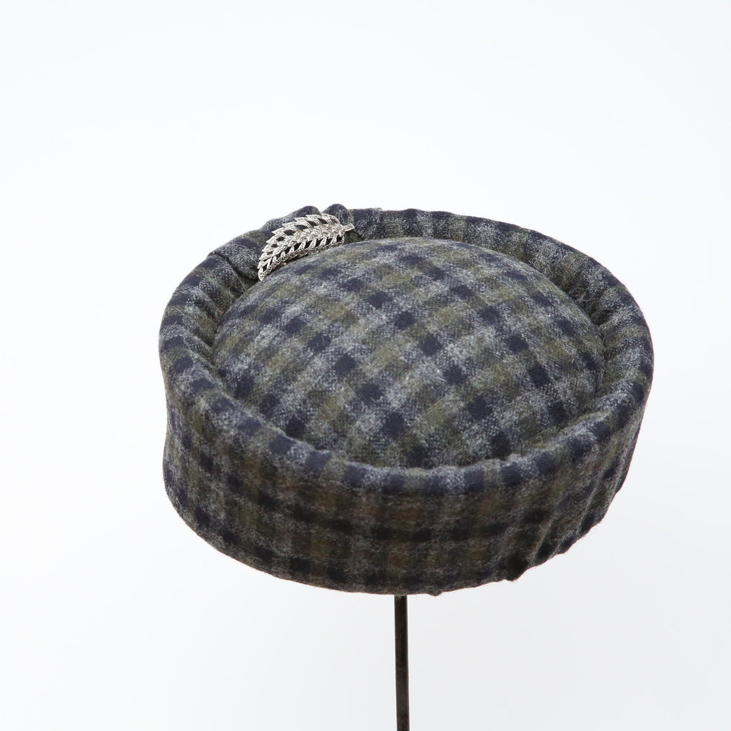 A green, black and grey check pure wool, with pleat and a vintage leaf marcasite brooch